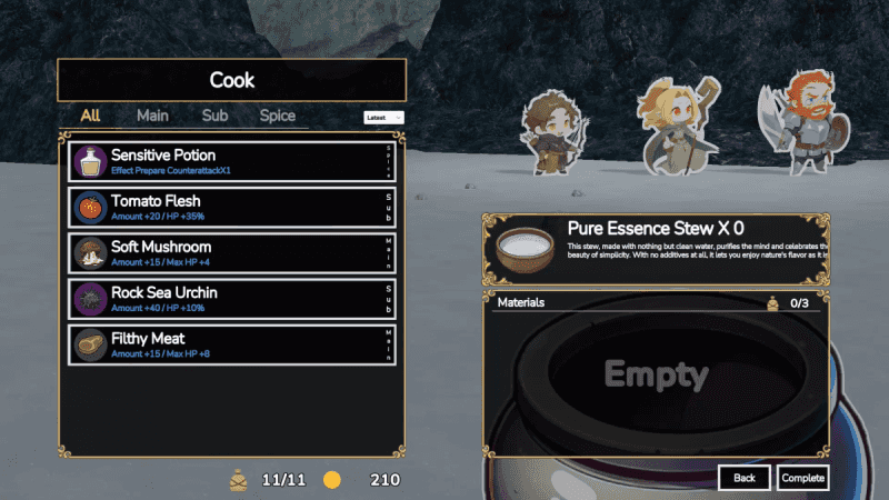 Dungeon Stew is still in the early stages of development, and the current build only implements the minimum core structure needed for a full run to function. The full game is planned to include five difficulty levels with many more enemies, companions, events, and story content. Feedback is always welcome. If you have any thoughts, I’d greatly appreciate it if you shared them through the Discord or survey buttons below to help improve the game’s overall quality.
